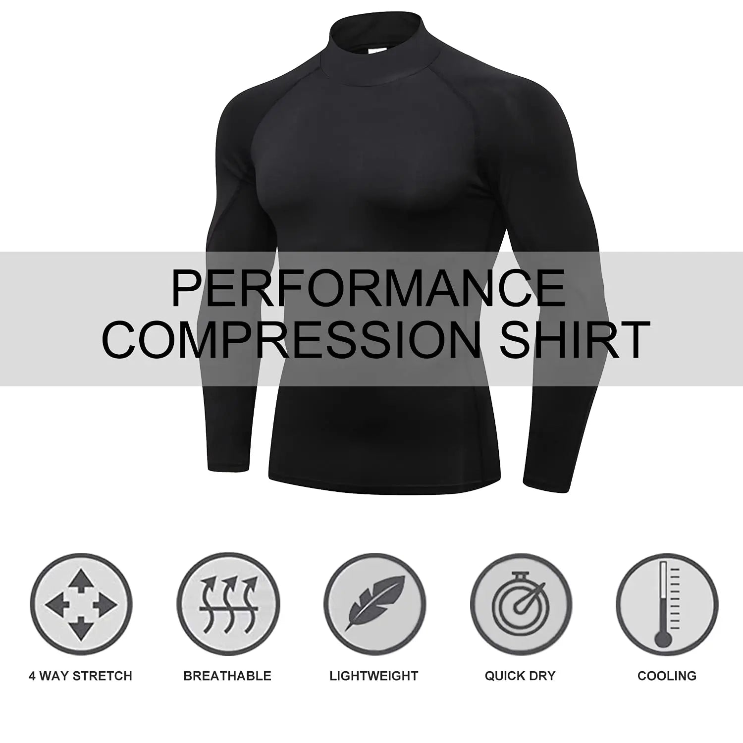 Stay ahead of your workout with a sleek, quick-dry compression long sleeve turtleneck that moves with you.